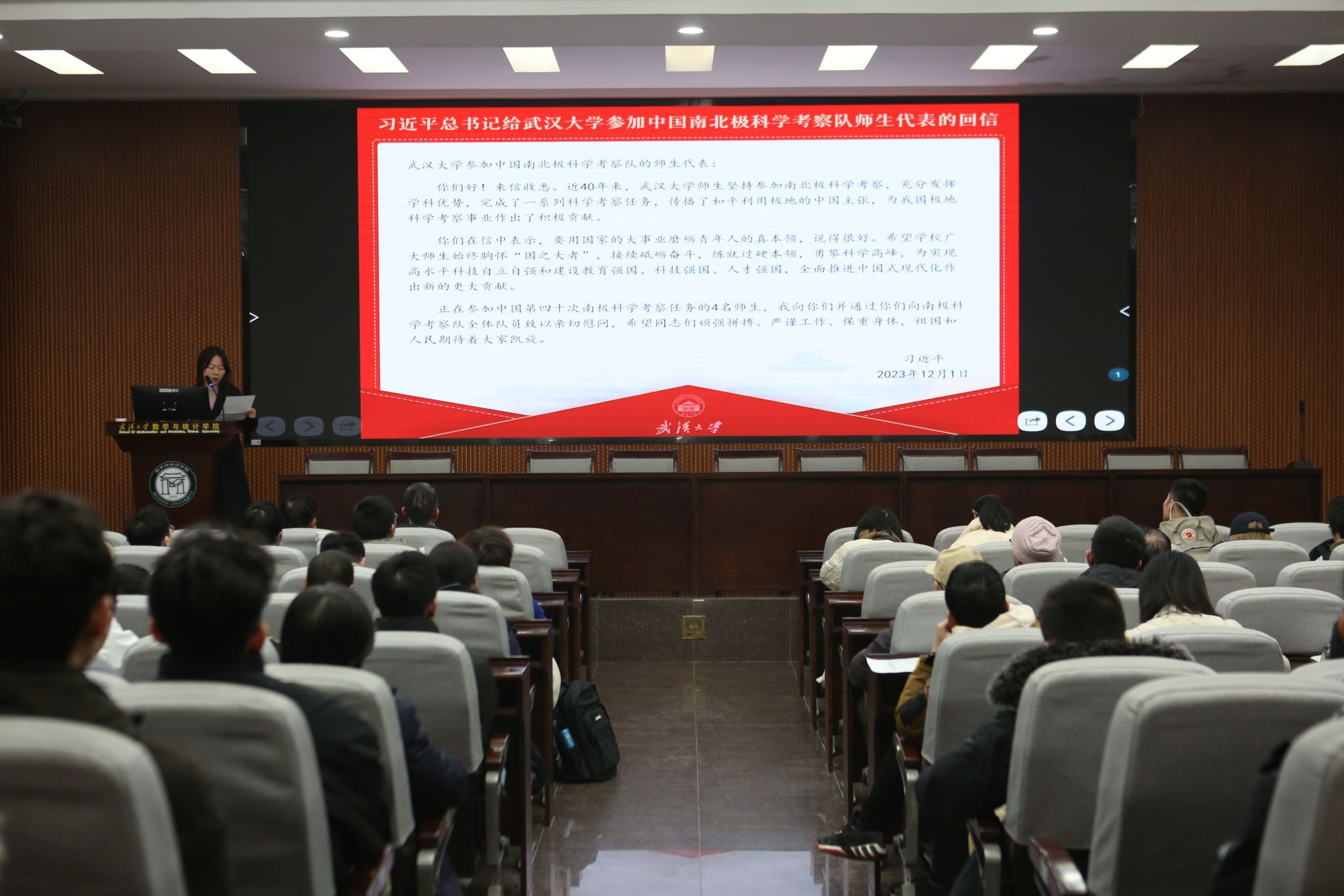 参加南北极科学考察队师生重要回信精神辅导报告会。成人直播