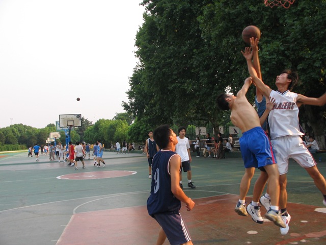 桂园篮球场拉开了序幕。夏日的骄阳也屈服于学员们不减的热情,洒下了落日的余辉。本次比赛共有六只代表队参加了比赛,比赛抽签分为A、B两个小组进行第一轮小组循环赛。A组为梦之二队(新疆大学等)、武大数学院队、AJ队(香港中文大学);B组为山河猛男队(山东、河南学员联队),京广小动脉队(北京大学、中山大学联队),Celtics(华南师范、复旦大学联队)。