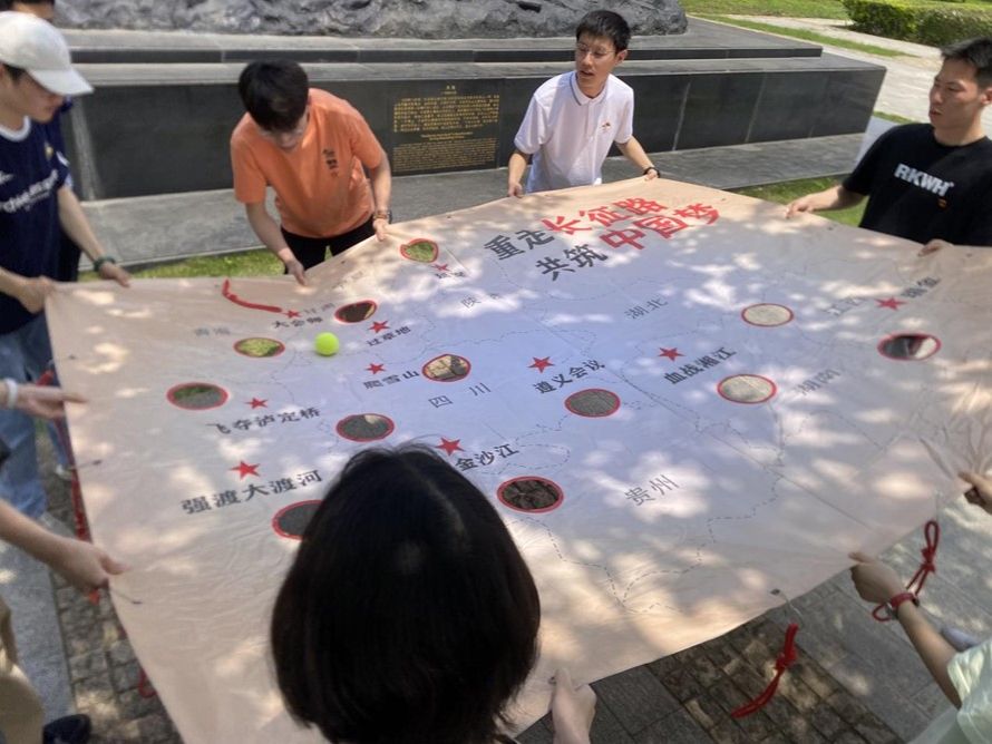 参观结束后,党员骨干开展了素质拓展活动,进行重走长征路、摸石头过河、建堡垒等活动。活动氛围轻松而愉悦,有力增进了党员之间的了解,提高了党组织凝聚力和战斗力。