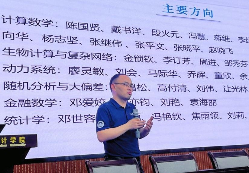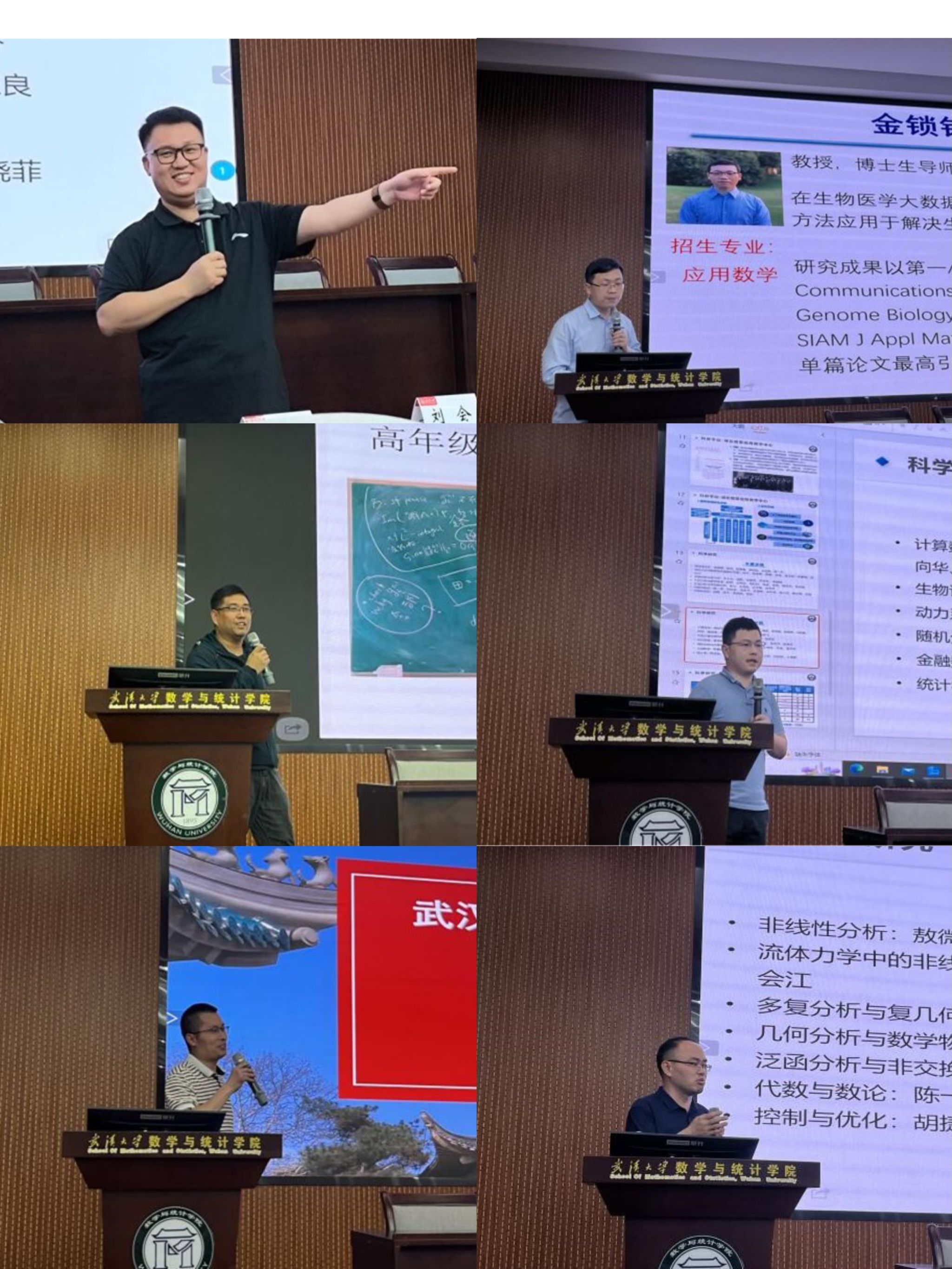 杨志坚、金锁钦、饶胜、戴书洋、刘会、缪爽等多位导师分别介绍了各系师资力量和研究现状。讲解了科学与工程计算、人工智能的数学基础、生物医学大数据驱动的机器学习建模和算法设计、多复变函数论与复几何、非线性方程和动力系统、流体力学中的非线性偏微分方程等多个研究团队的科研项目及研究生培养要求。导师们鼓励大家关注新兴科研领域及交叉领域,呼吁本科生尽早进行科研训练。