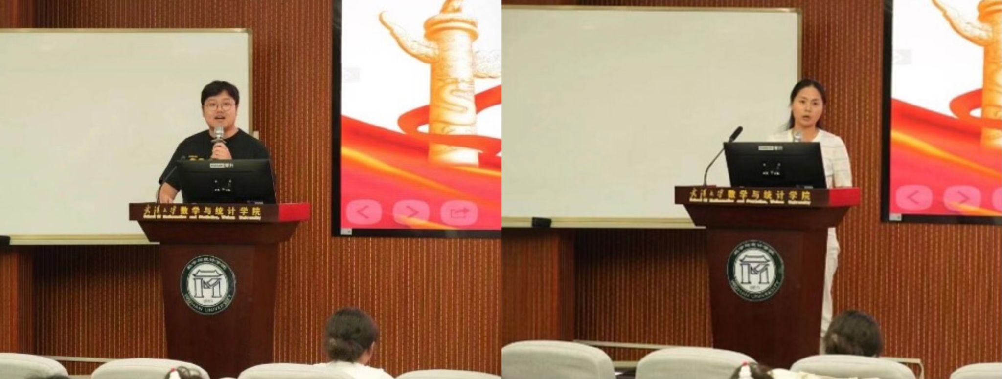汪思明和刘珊珊为获奖同学颁奖,“阳光伙伴”先进个人和优秀学生党员依次上台领奖并合影留念。