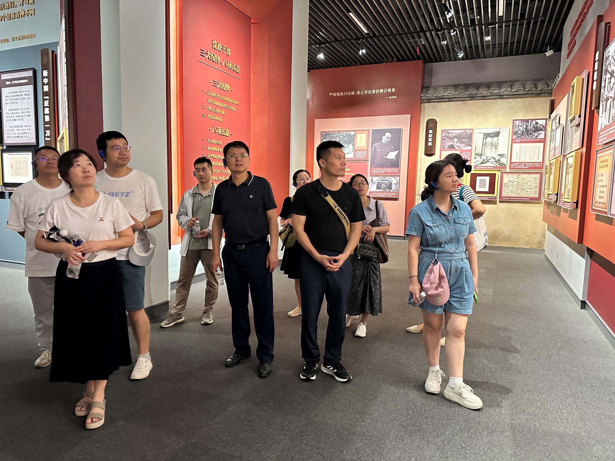 为深入推进党纪学习教育走深走实,中心组成员在“毛泽东与反腐倡廉”专题展厅中开展了党风廉政教育,感悟一代伟人的心路历程,学习毛泽东同志为核心的第一代中央领导集体发扬民主、依靠群众,严惩腐败、严格教育,率先垂范、以身作则,创造彪炳史册的成功经验,进一步引导教工党员强化纪律意识、加强自我约束、提高免疫能力,增强政治定力、纪律定力、道德定力、抵腐定力,始终做到忠诚干净担当,在加快中国特色世界一流大学建设的新征程上勇担使命、开拓新局,答好“推进中国式现代化,武大何为”的时代命题。