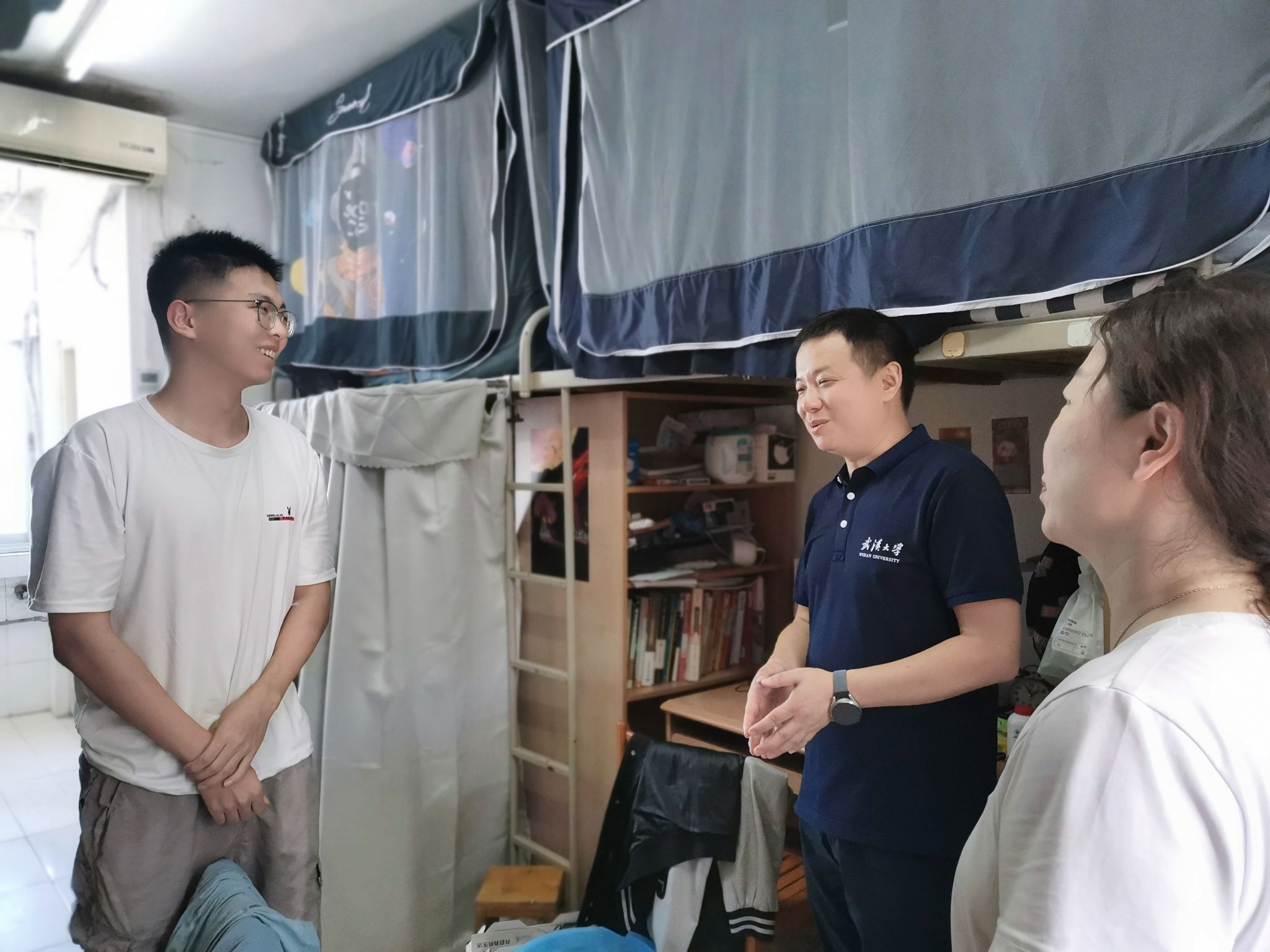 学院领导和辅导员走进学生宿舍与留校学生进行了亲切交谈,向留校学生表达了深切关怀和殷切期望。他们仔细查看了公寓的住宿环境和安全设施,提醒学生宿舍用电安全等事项,强调了防暑降温和保持健康作息的重要性。深入了解留学学生在社会实践、暑期科研和学习竞赛等方面的情况,针对学生提出的疑问都一一给予答复和建议,鼓励他们要树立信心,明确目标,以积极的心态迎接挑战。学院领导叮嘱同学们在校学习的同时,要保持良好的生活习惯,合理规划学习与休息,做到劳逸结合,也提醒同学们要注意个人安全,切忌到东湖游泳。李勤书记强调,学院始终将学生的安全稳定和健康成长放在首位,将持续关心关注留校学生的学习生活情况,及时解决他们遇到的困难和问题,为留校学生创造一个安全、稳定、和谐的学习生活环境。