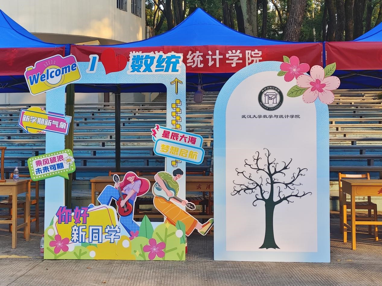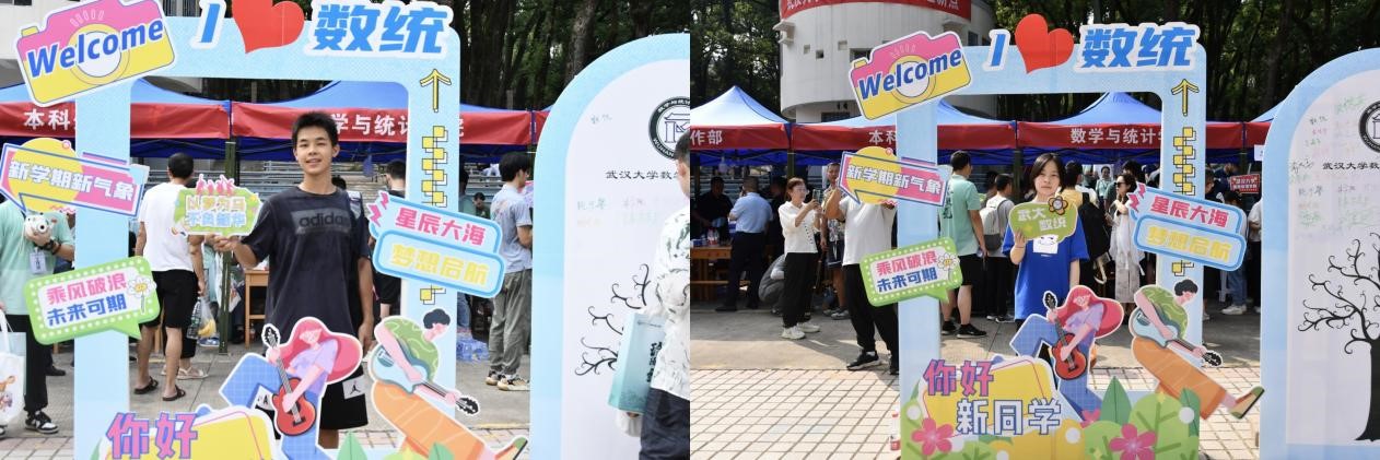 迎新处,2024级新生们留下了在珞珈山的第一张照片。