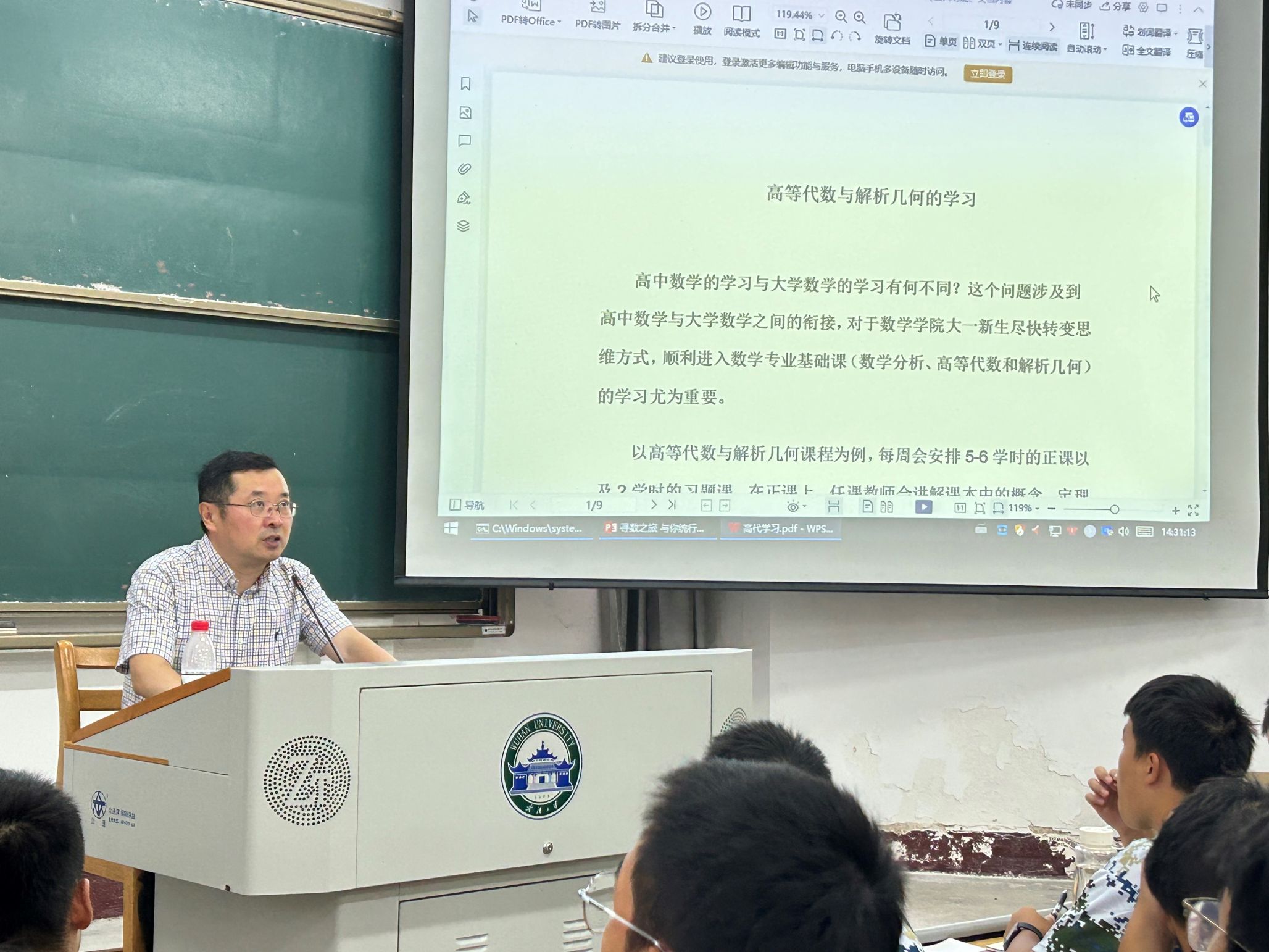 涂玉平教授和周小方教授为2024级本科生讲解大学阶段高等代数与解析几何、数学分析的学习方法。