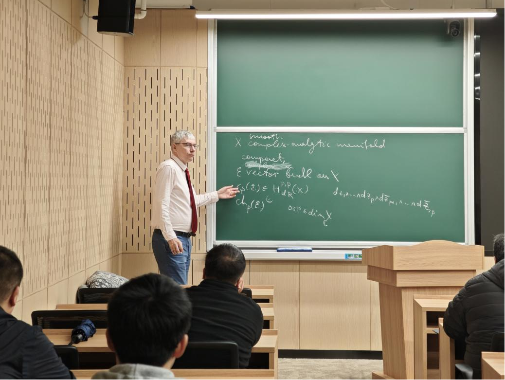 此次讲座中,Bondal教授以复解析簇上的全纯向量丛为切入点,介绍了其上两种重要的导出范畴,并深入浅出地解释了其理论与复代数簇经典理论的显著区别。此外,Bondal 教授还介绍了微分分次范畴的概念以及复解析簇上导出范畴的微分分次强化,并简要介绍了他对该课题的最新进展和结果。