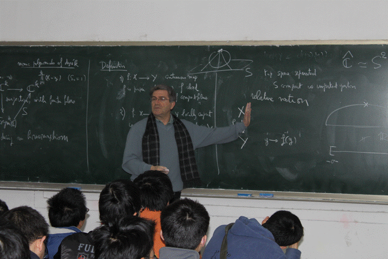 开始讲授“复几何”课程。此课程为期四周共36学时,通过考试后可获得2个学分。Daniel Barlet教授于1992年至1994年任法国数学会理事长,曾任嘉当数学研究所所长,属世界顶尖级数学家,在“复几何”领域具有重要国际影响。他的授课不仅具有深刻的学术意义,而且为成人直播