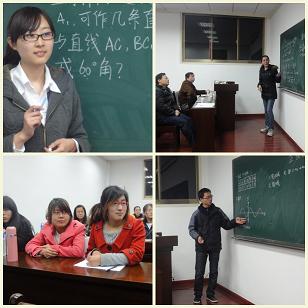 研究生教学技能研究会成立以来首次开展的研究生教学技能研究活动。数学院刘丁酉教授、钟六一副教授为参加教学研摩的9名研究生进行了点评和指导。