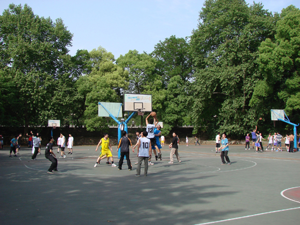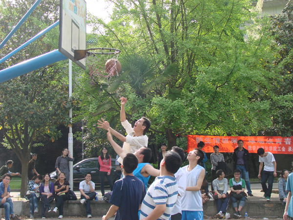 工会主办和数院研究生会承办的师生联谊篮球赛激情上演,数学院热爱篮球活动的老师与同学们进行了一次技术交流,同时也吸引了不少老师和同学前来加油助威。