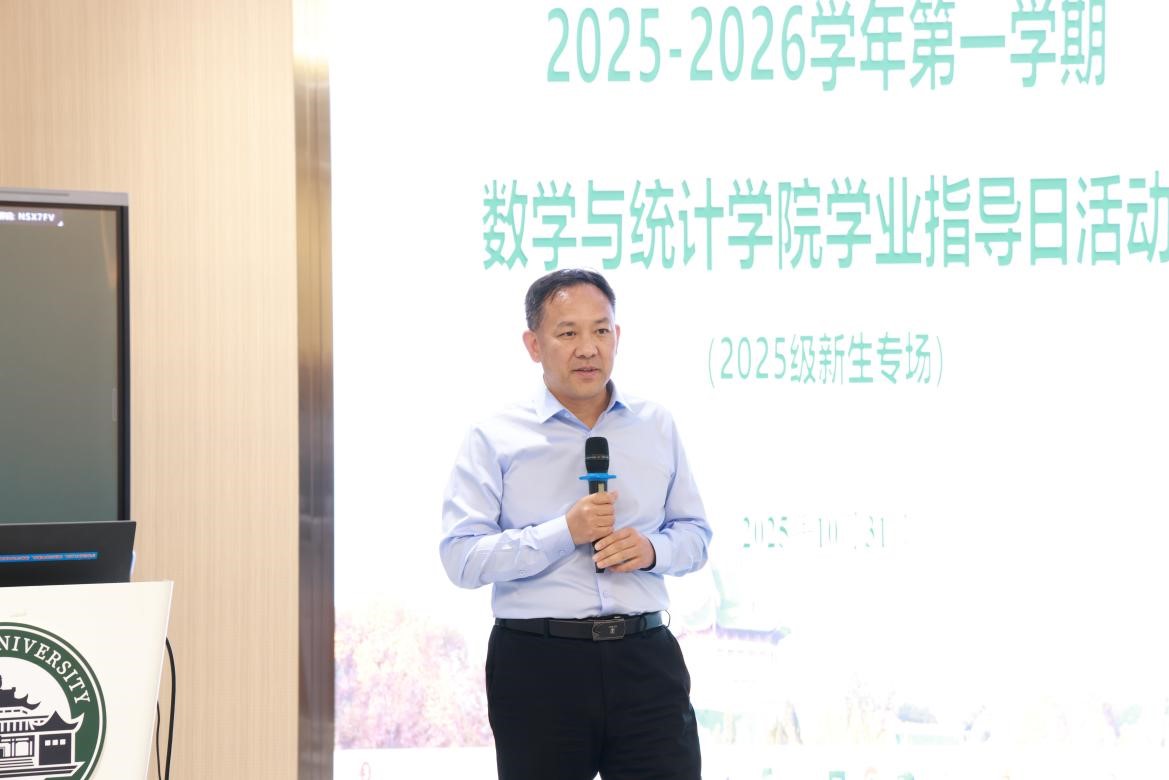 李勤总结寄语。他以“变与不变”、“规则与自由”、“个人与系统”三组关键词,勉励同学们既要主动求变,适应新环境、新方案,也要坚守对知识求索的不变初心;既要享受大学之自由,也要尊重学术之规则,将个人成长视为一个系统工程,实现全面发展。他指出,学院是同学们人生系统中最强的算法支持,希望同学们通过“清晰梦想+实际行动+学院支持”的万能公式,创造无限可能的未来,推导出属于自己的独一无二的精彩证明。