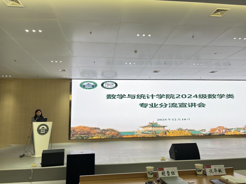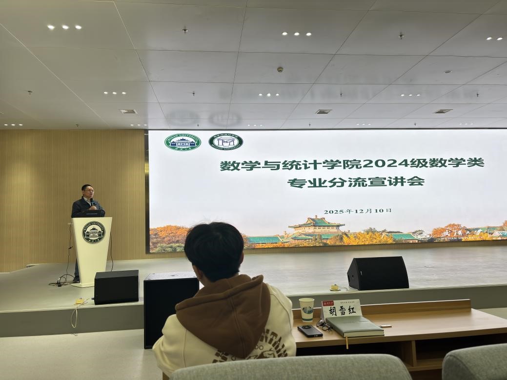 为进一步深化教育教学改革,提高数学人才培养质量,引导学生理性选择专业方向,我院于12月10日在雷军科技楼报告厅举办了2024级本科生大类专业分流宣讲会。副院长王茂发、概率与统计科学系主任让光林、应用数学系主任张灿、金融数学方向负责人胡亦钧、信息与计算科学系主任戴书洋出席会议,教学办主任胡雪红、学工办辅导员谈华敏及2024级数学类全体本科生参会。胡雪红主持会议。