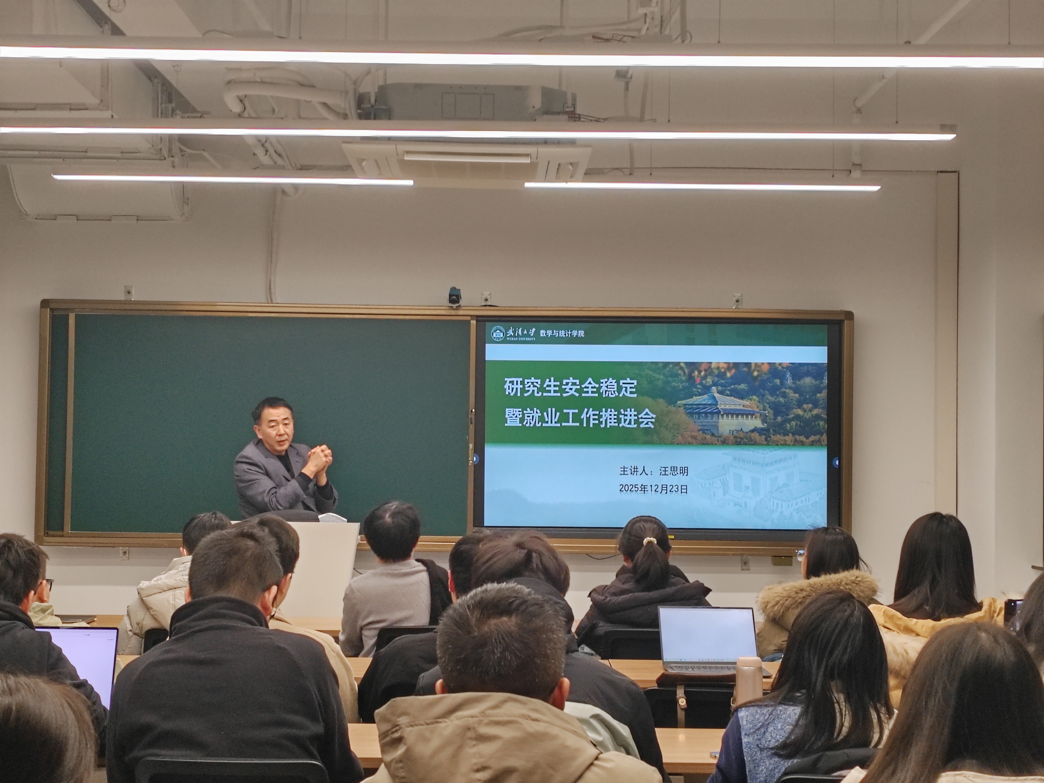 在A419会议室组织召开研究生安全稳定暨就业工作推进会。党委副书记汪思明和全体研究生学生骨干参会。汪思明结合实际案例,面向全体参会学生进行了安全教育和就业动员。