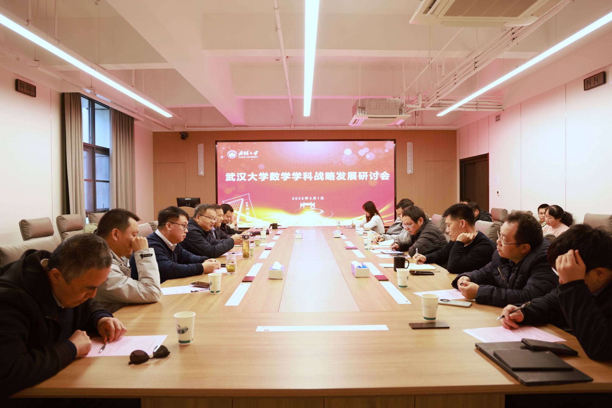 现有工作基础,分析了数学学科发展亟需解决的问题,展望了数学学科发展的战略重点。武汉数学与智能研究院副院长杨志坚汇报了武汉数学与智能研究院有关数学学科建设的情况以及湖北应用数学中心的工作。