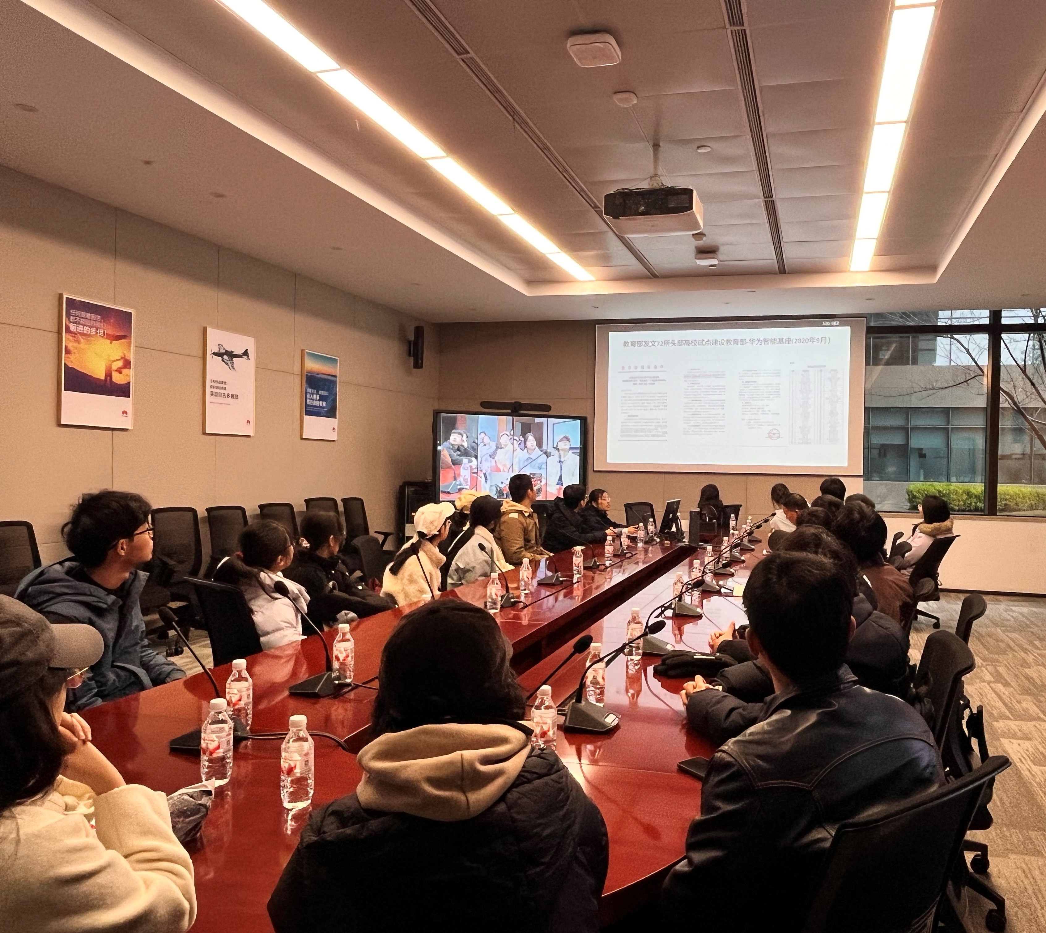 师生一行25人在学院党委副书记汪思明的带领下,前往华为武汉研究所参观学习。华为武汉研究所高校系统部贾梦瑞、杨怡平热情接待了学院师生。