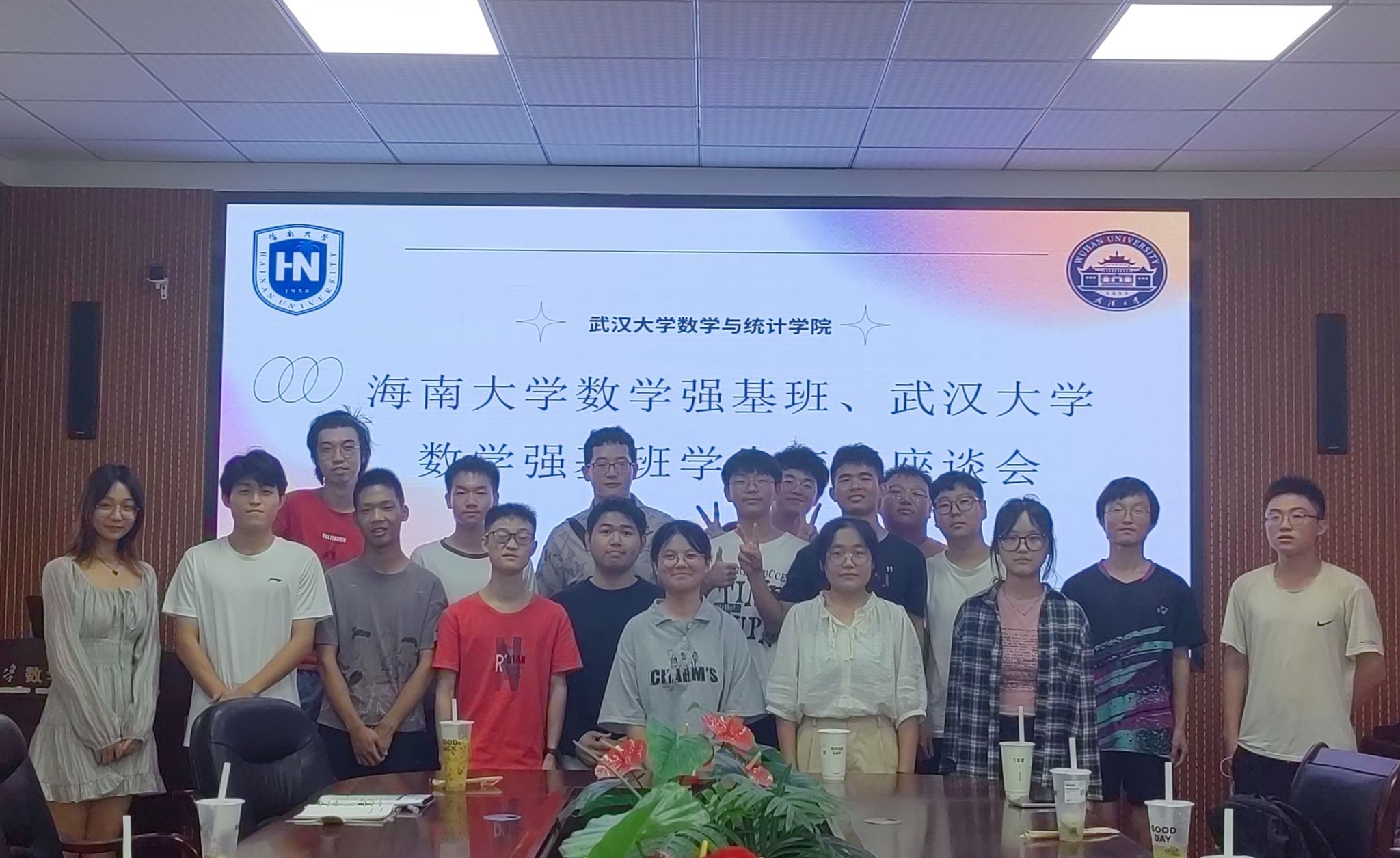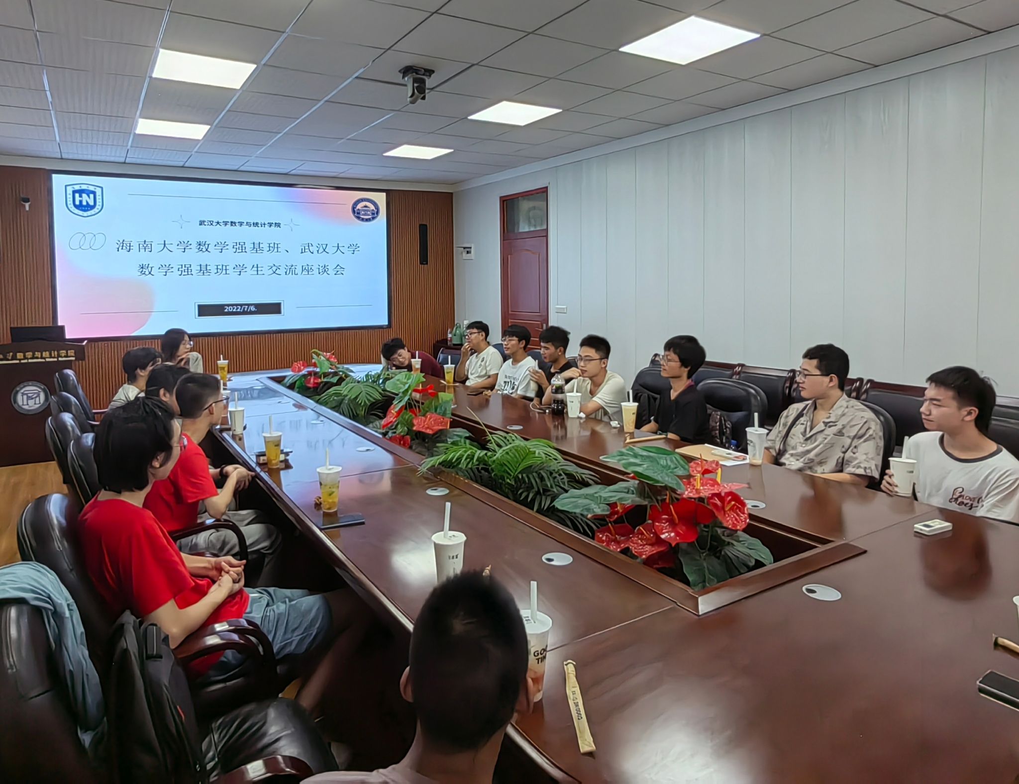 7月5日,学院举行海南大学数学强基班学生交流欢迎会,参会人员有海南大学刘合国教授等17名师生,学院副院长王茂发、党委副书记汪思明、学工办和教学办相关老师以及强基班学生代表参会。