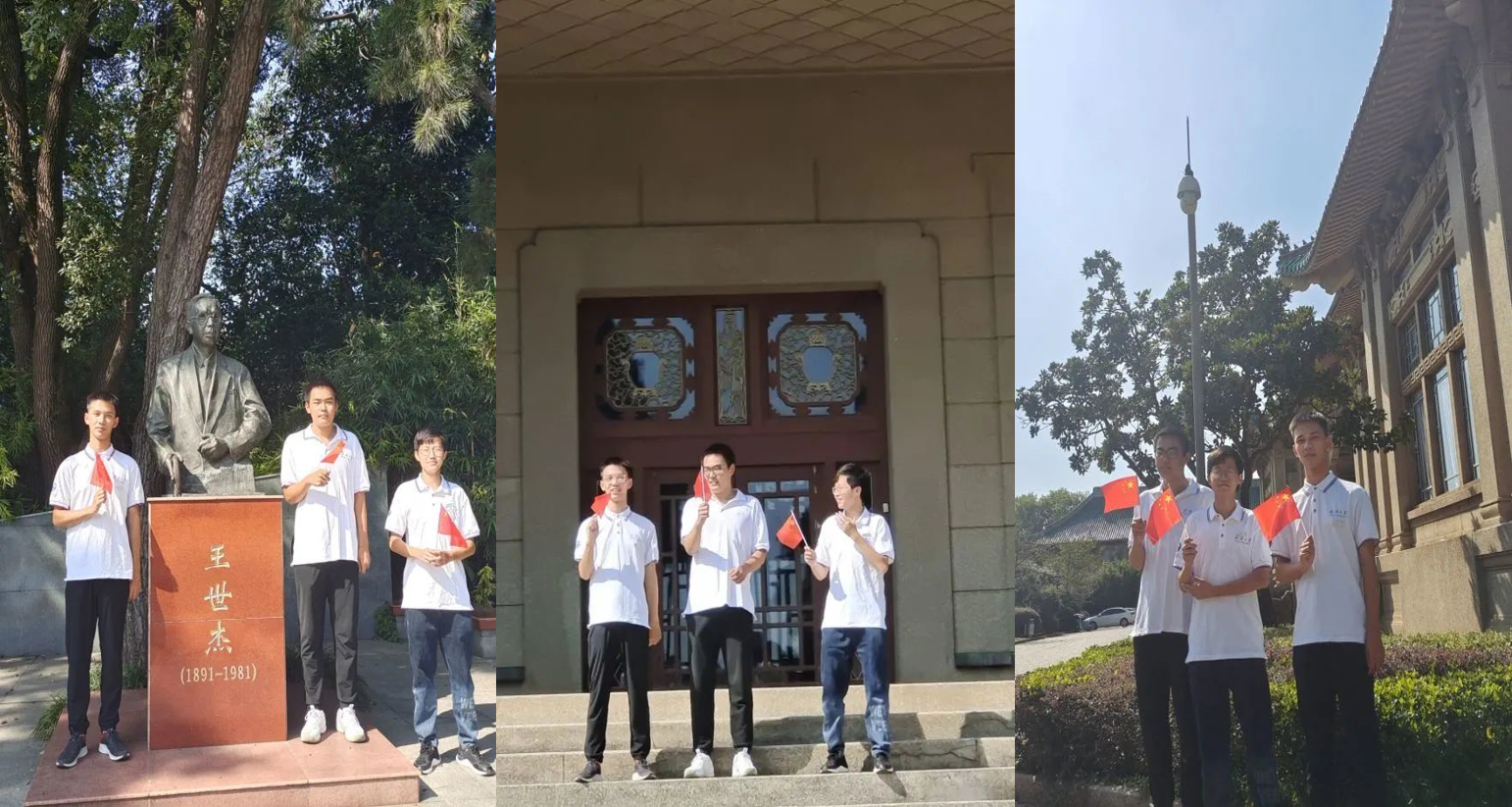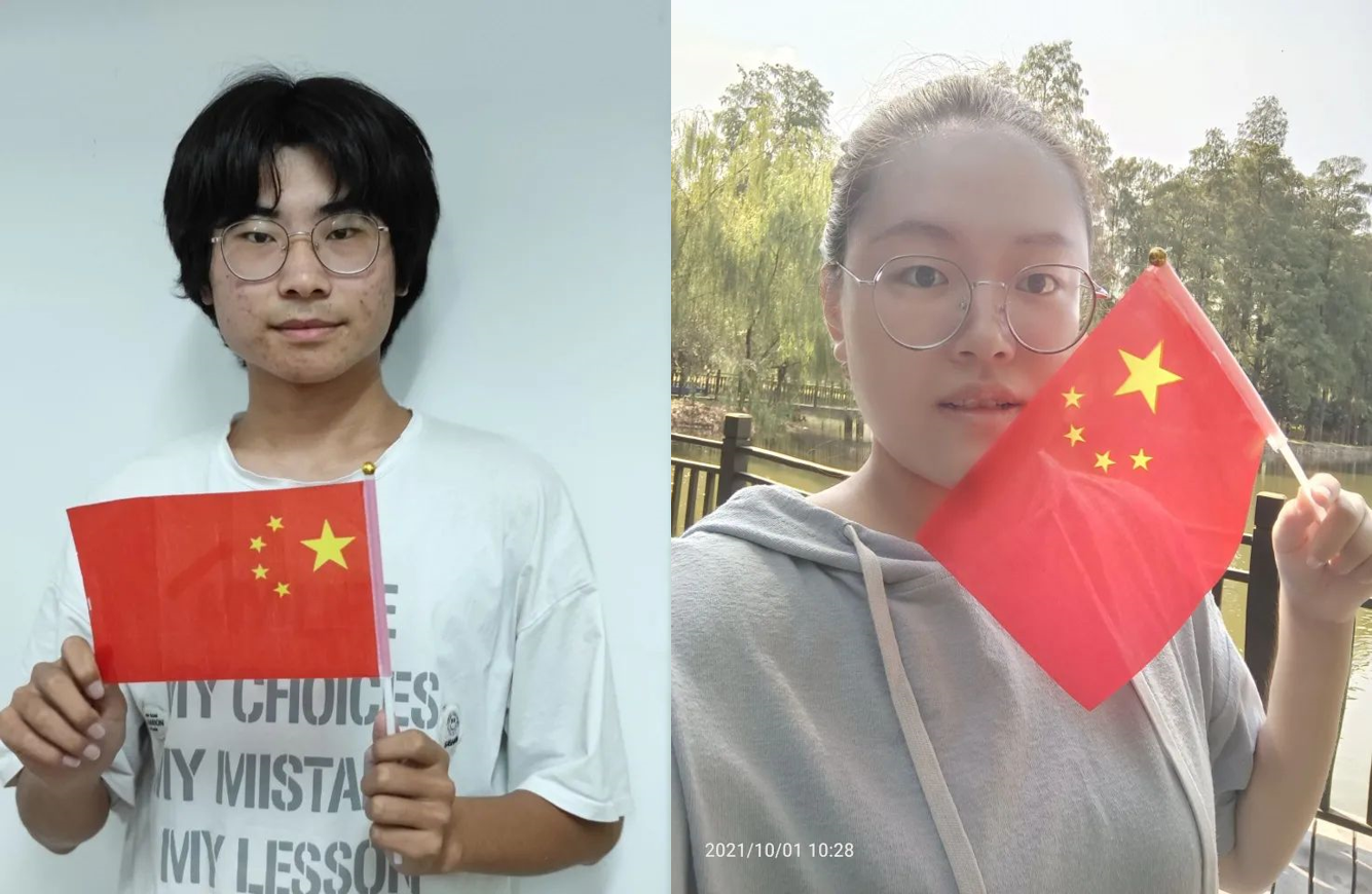 2021级强基班的同学们合影国旗并祝福:“身在黼蔀黻纪,吾辈披星戴月,感念着您的付出。七十二年,包容呵护,是您,我的祖国母亲;踏遍山川的脚步野蛮生长,胸中的热血肆意流淌,赤忱的生命展翅飞翔,东方的太阳绽放光芒,我高歌祝福您,伟大的祖国母亲,生日快乐!”