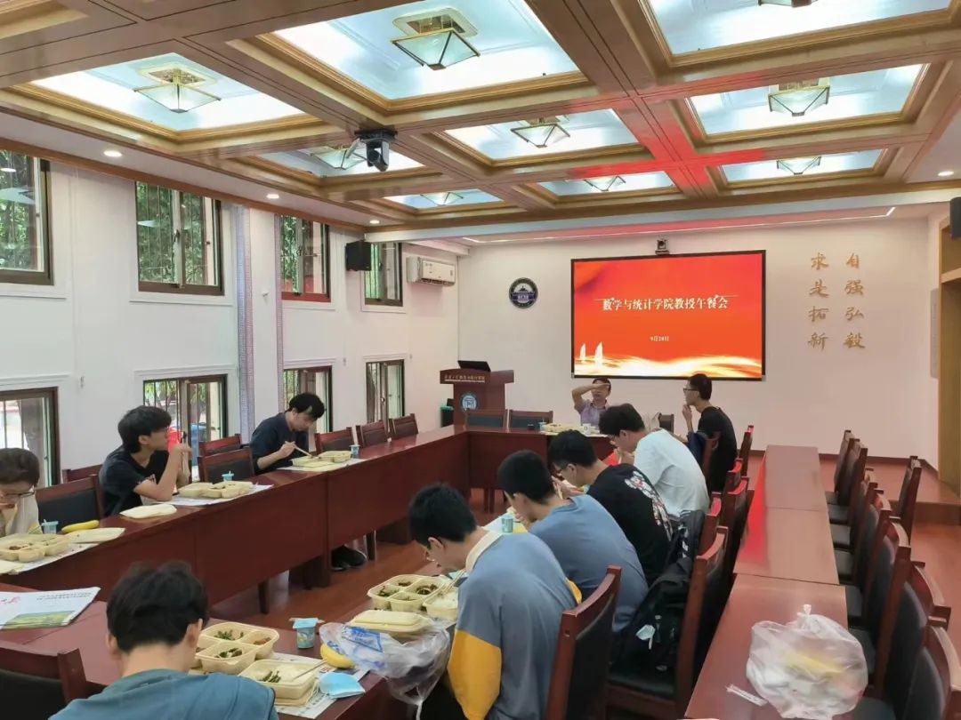 同学们与尹万科教授一起共进午餐。尹万科教授就同学们如何理解课本,研究生如何选择方向,遇到听不懂的课程怎么处理,数学前景方向和找工作的四条主要去路等方面与大一大二大三的同学们进行了友好的交流与解答。