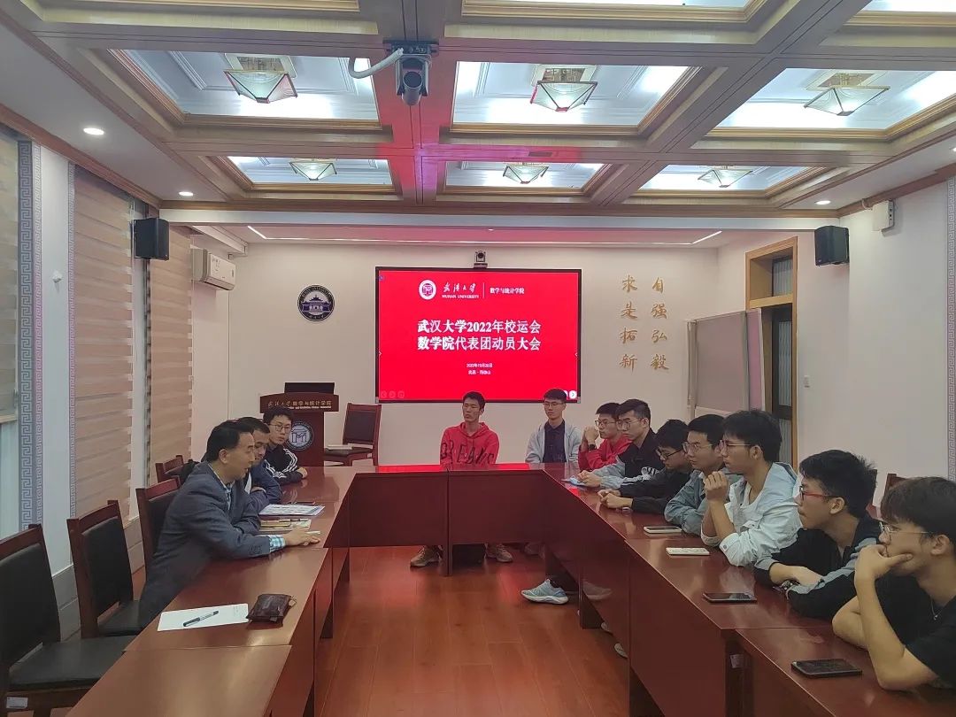 举办2022年校运会数学院代表团动员大会。院党委副书记汪思明,院团委书记刘宇晖出席,学院学生会主席团成员张蔚泓,体育部主要负责人崔欣禹及校运会数院代表团运动员参加大会。