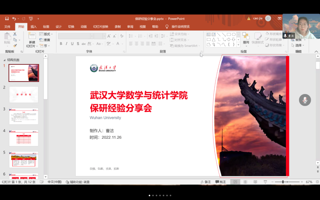 衣孝儒学长从自身经历出发,讲解了获得直博资格的过程,并强调数学分析与高等代数等专业课的重要性。最后,针对择校、择师的问题,学长希望同学们结合自身需求,做好取舍。