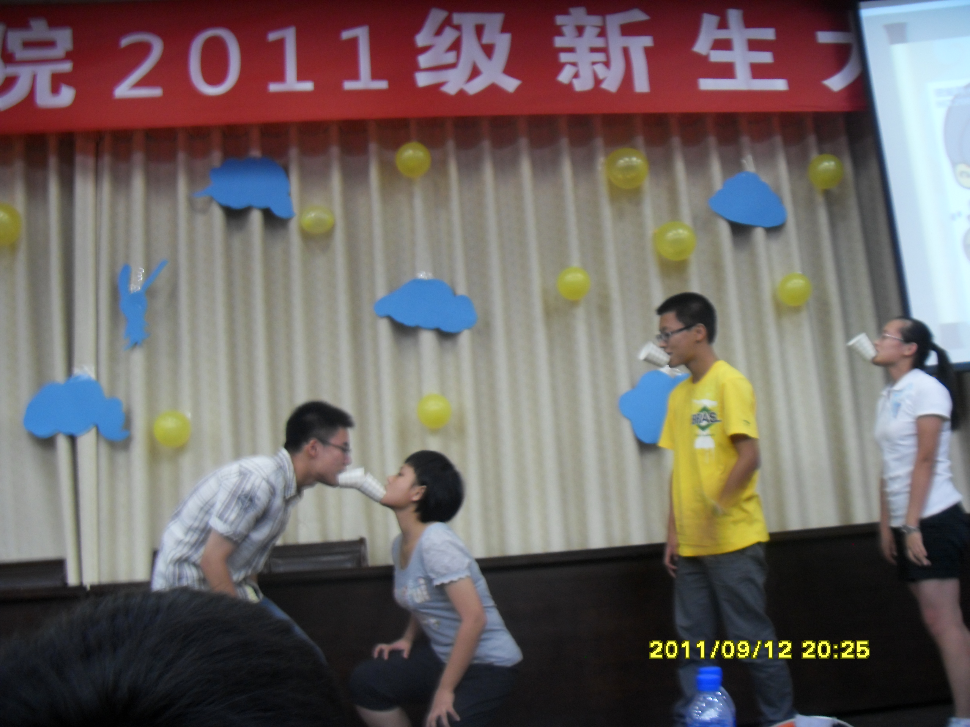 中秋联欢晚会于樱顶数学会堂隆重召开。辅导员胡法拉老师、院学生会成员及2011级全体新生参加观看。