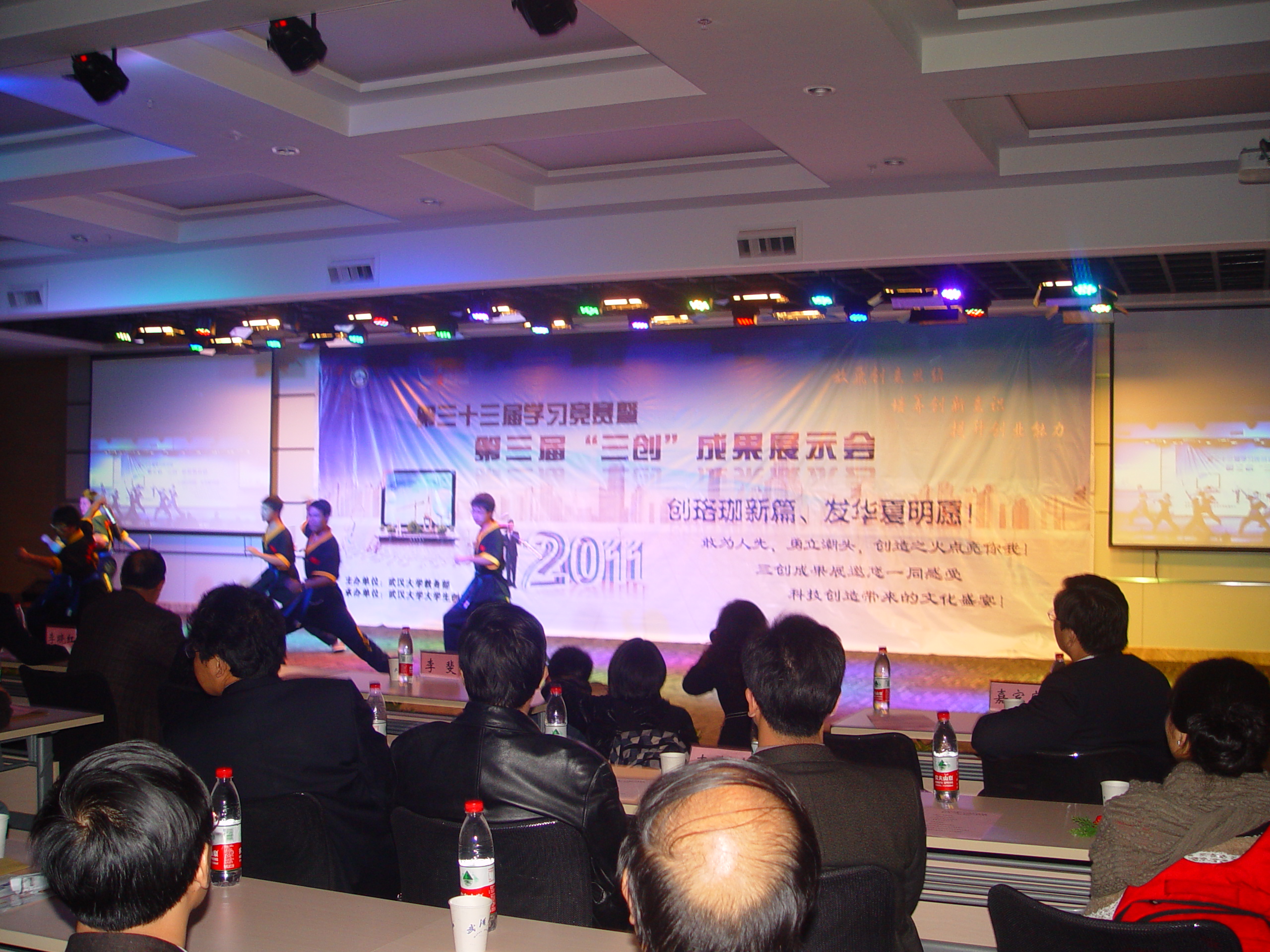 第33届学习竞赛暨第三届“三创”成果展示会在新图书馆B栋二楼开幕,各个学院都展示出了自己学院的“绝活”:自制机器人行走自如,学生设计的新式幼儿园设计方案,预防血吸虫病的水漩涡箱……这丰富多彩的展示吸引了无数人驻足观看。