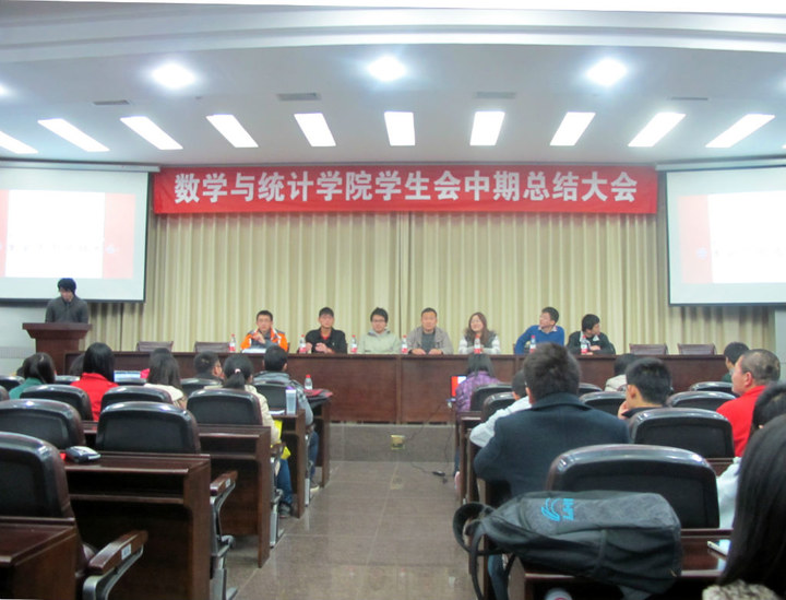 学生会中期总结大会在数学会堂隆重举行。学生会主席李绎楠同学,常务副主席段晓谕,分团委副书记安喆、文墨,副主席蔡永晖、石奕、韩佳琦以及各部门部长、副部和各自的部委均到场参加了此次总结大会。大会上,各部门分管主席及各部门代表均对开学三个月九十二天来的工作做了细致的回顾与总结,并表达了对以后学生会工作的建议、要求和期望。