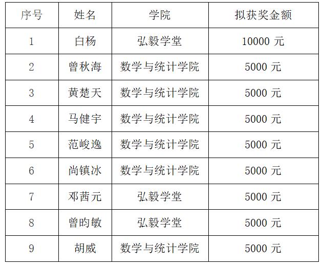 数学专业优秀学生奖学金实施细则》精神,经个人申报、教师推荐、评审委员会评审,拟确定白杨等共9名同学获得成人直播