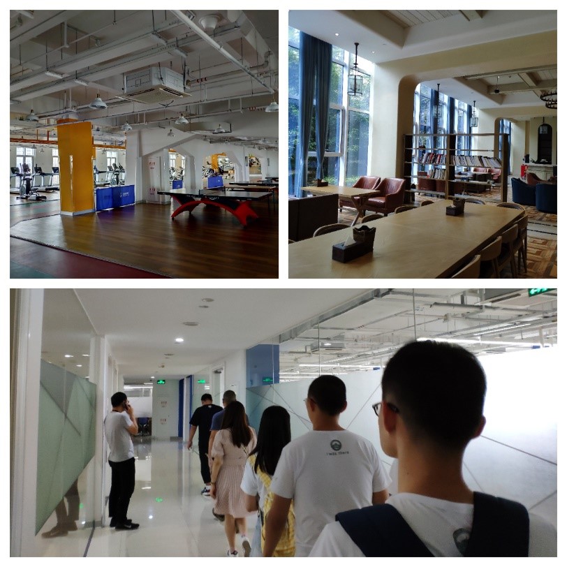 在HR的带领下,队员们参观了同花顺新大楼的办公区域,以及大厅、健身房、休息区等配套设施区域,对该公司的工作环境有了初步了解。在参观过程中,王经理向我们简要地介绍了同花顺的公司情况。同花顺是国内第一家互联网金融信息服务行业上市公司,其财务产品APP在同行市场中已占据第一份额,同时同花顺是一家关注金融数据的公司,其员工人数超过3500人,技术与销售人员各占一半。