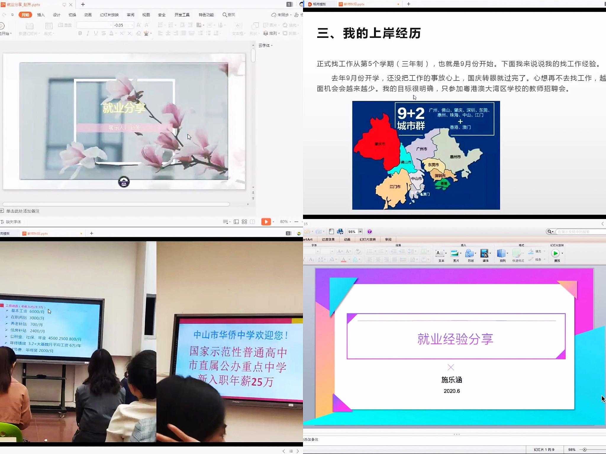 第六位同学是来自于基础数学的杨琼,他即将就职于珠海市教育局。学长告诉我们,一定要尽早确定自己的就业方向,并结合自身的上岸经历,从招聘步骤、面试试讲、和同学交流组队、招聘信息来源、招聘点、应届毕业生身份、编制鉴别和协议签署八个方面给出了建议,并介绍了教师的待遇。