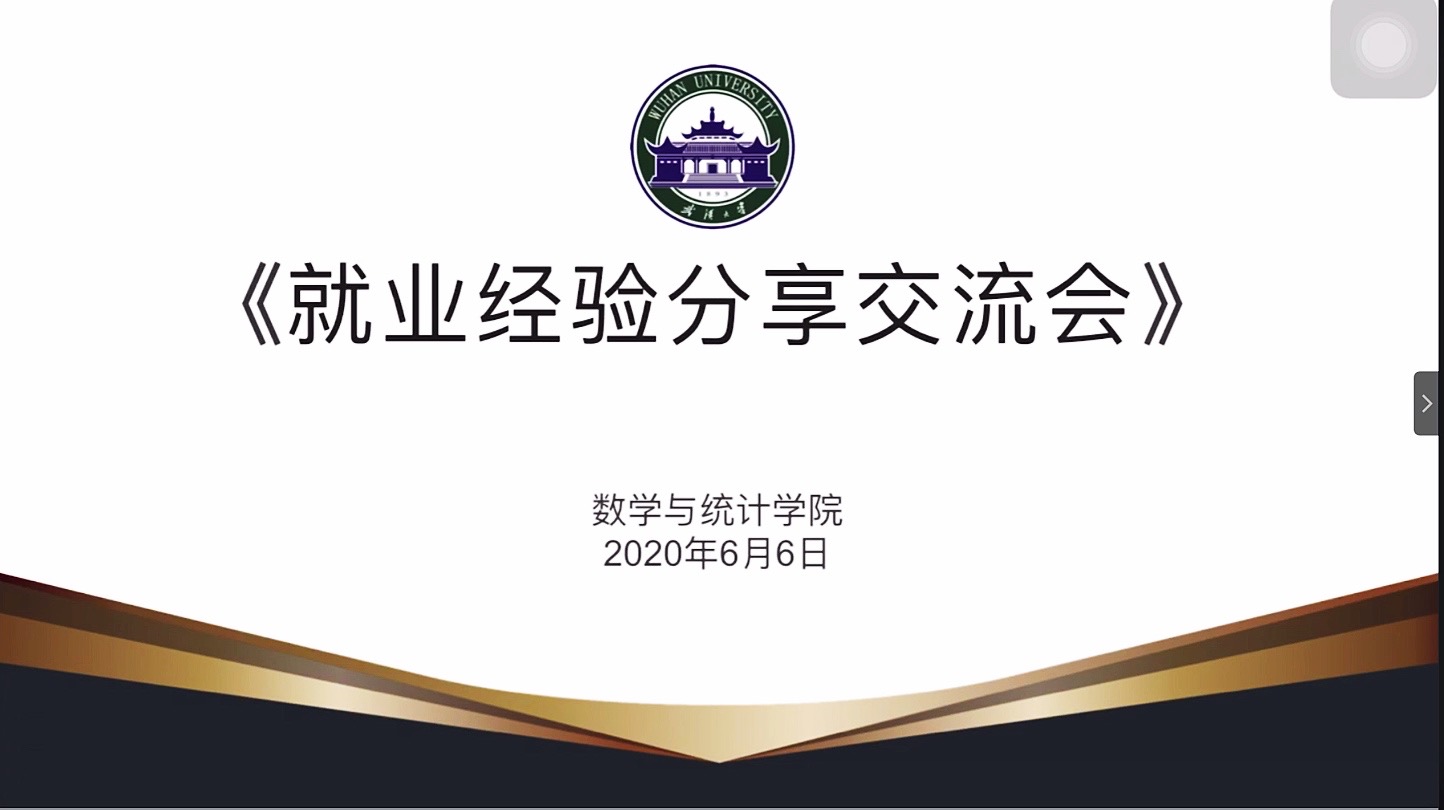 研究生会主办的2020年研究生就业经验交流会在腾讯会议线上展开。活动旨在为即将面临求职的同学们提供咨询平台,帮助同学们更好更快转变角色、积极准备融入社会。本次讲座邀请到来自金融、教育、互联网等不同行业的9位学长学姐现场为大家分享经验,解答困惑。