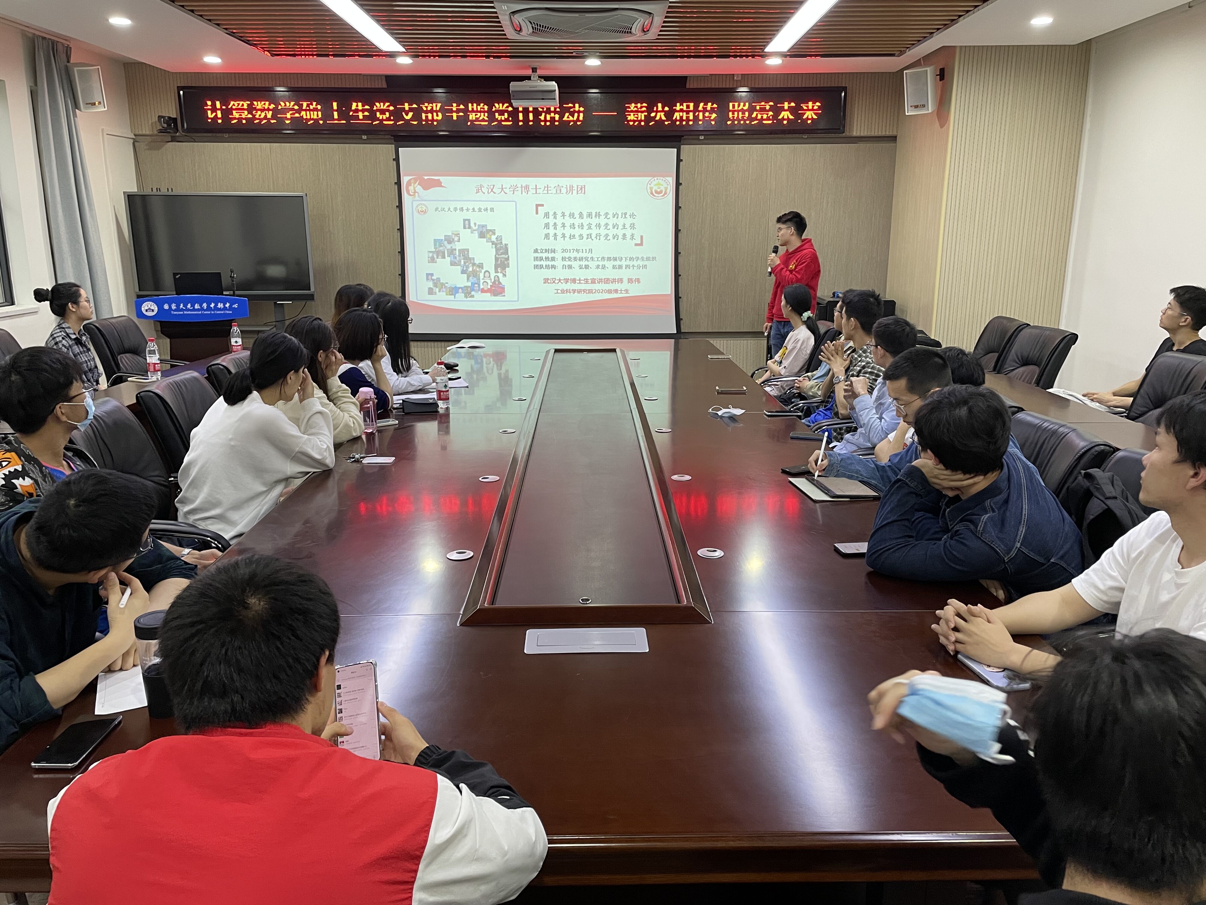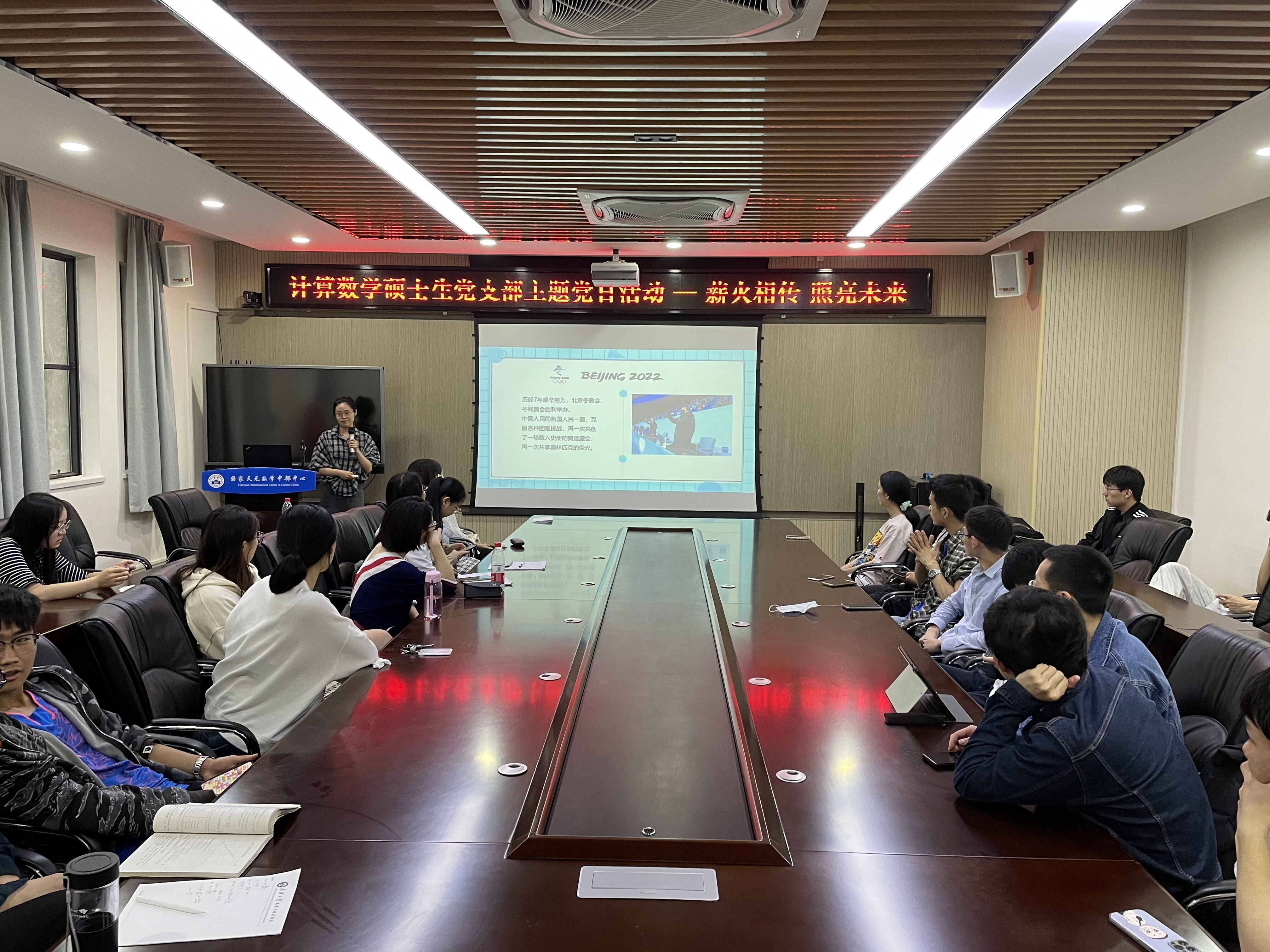 2022年4月22日下午,成人直播 计算数学专业硕士生党支部联合2019级计算数学团支部于学院东北楼302会议室开展了以“薪火相传照亮未来”为主题的党团活动。本次活动邀请了成人直播 博士生宣讲团的陈伟、张弛两位讲师,分别以“井冈山精神”和“冬奥精神”为纲,带领在场的20余位党员、团员共同回顾了一场中国共产党波澜壮阔的奋斗历程。本次活动旨在“以党带团、党团联动”,活动由计算数学专业硕士生党支部书记郝梦倩主持。