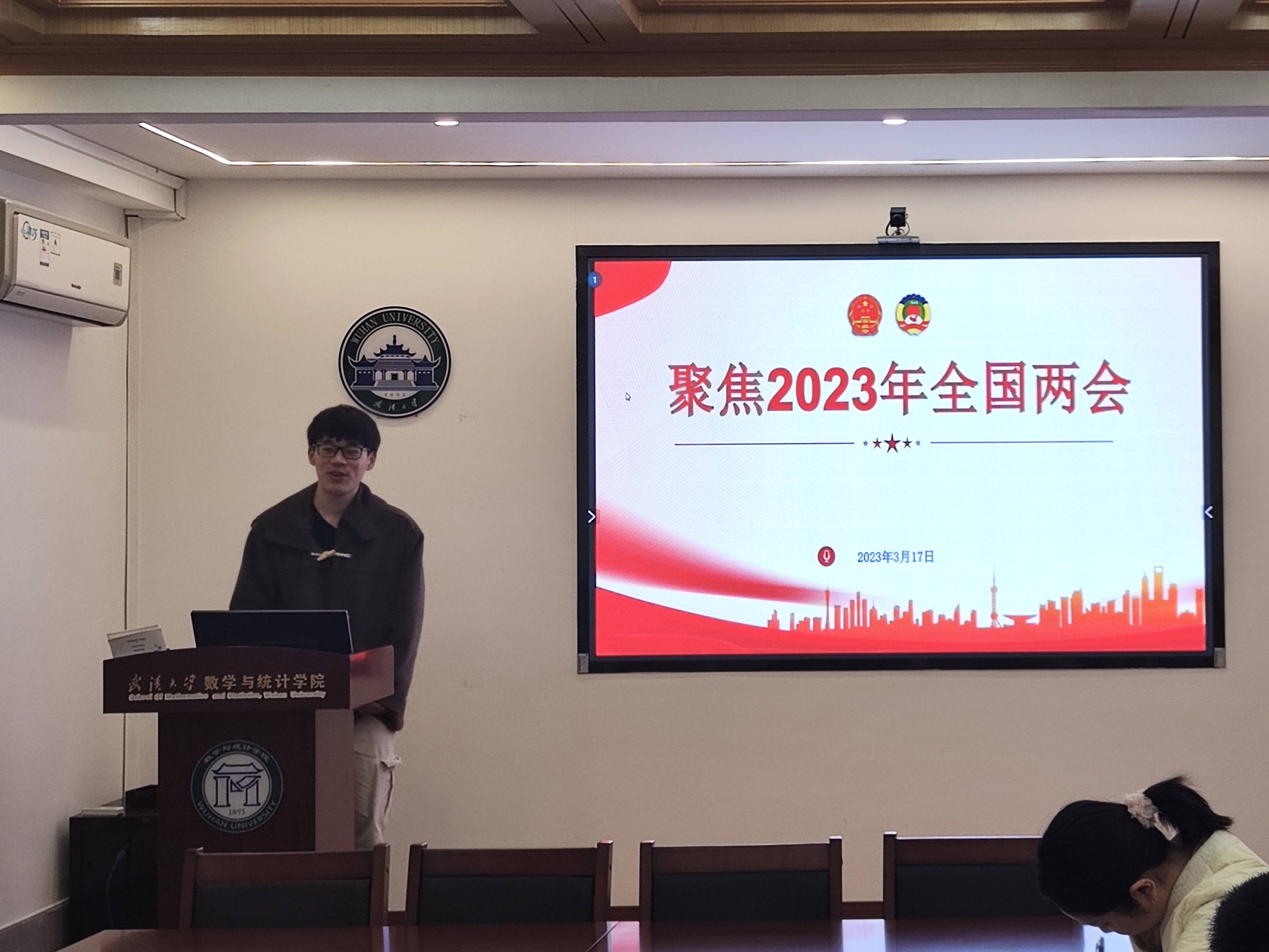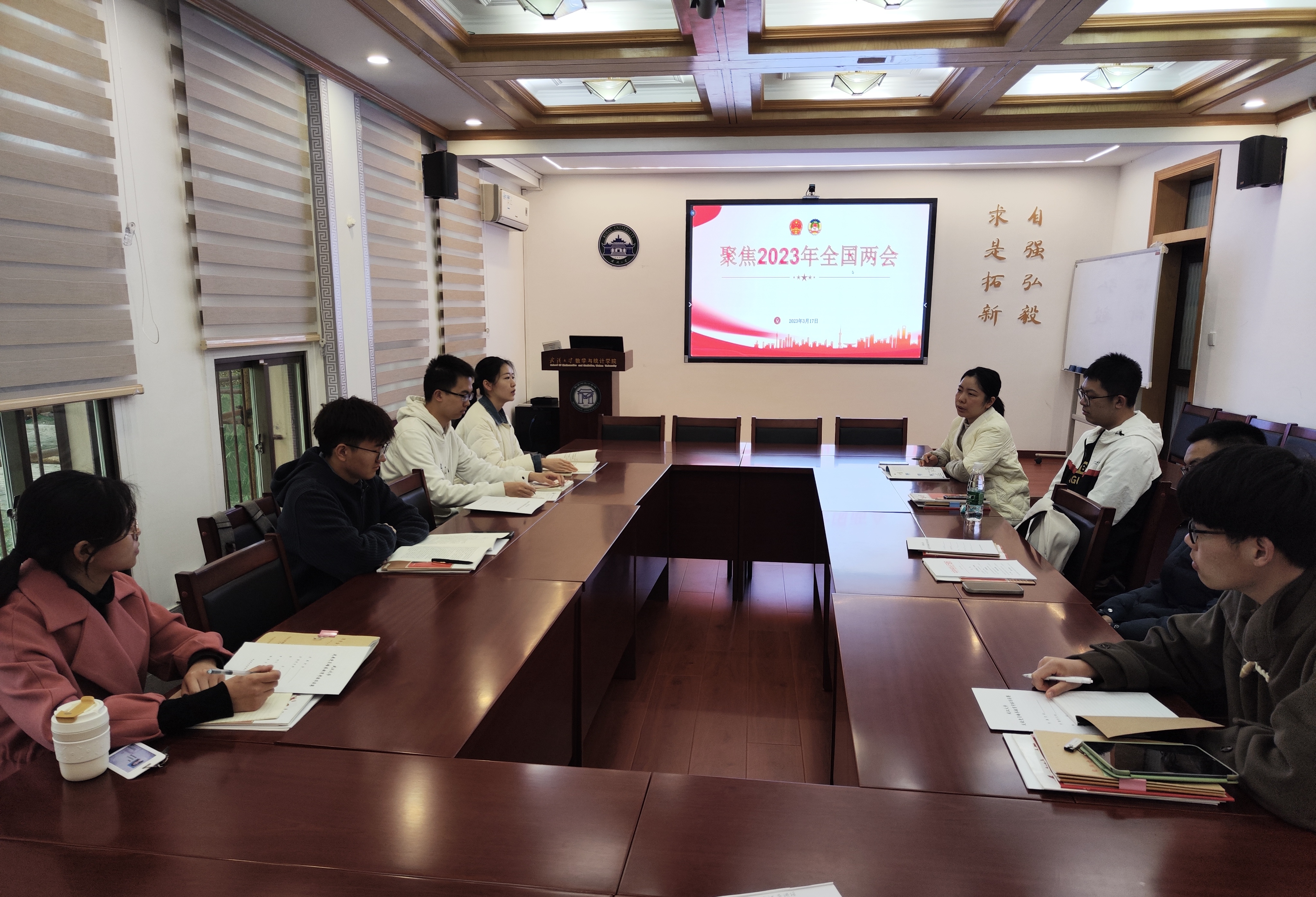 本次会议由基础数学专业硕士生党支部书记夏豪杰带领学习,聚焦2023年两会热点,学习政府工作报告,内容详实,讲述生动。现场支部书记踊跃交流心得体会,气氛活跃。