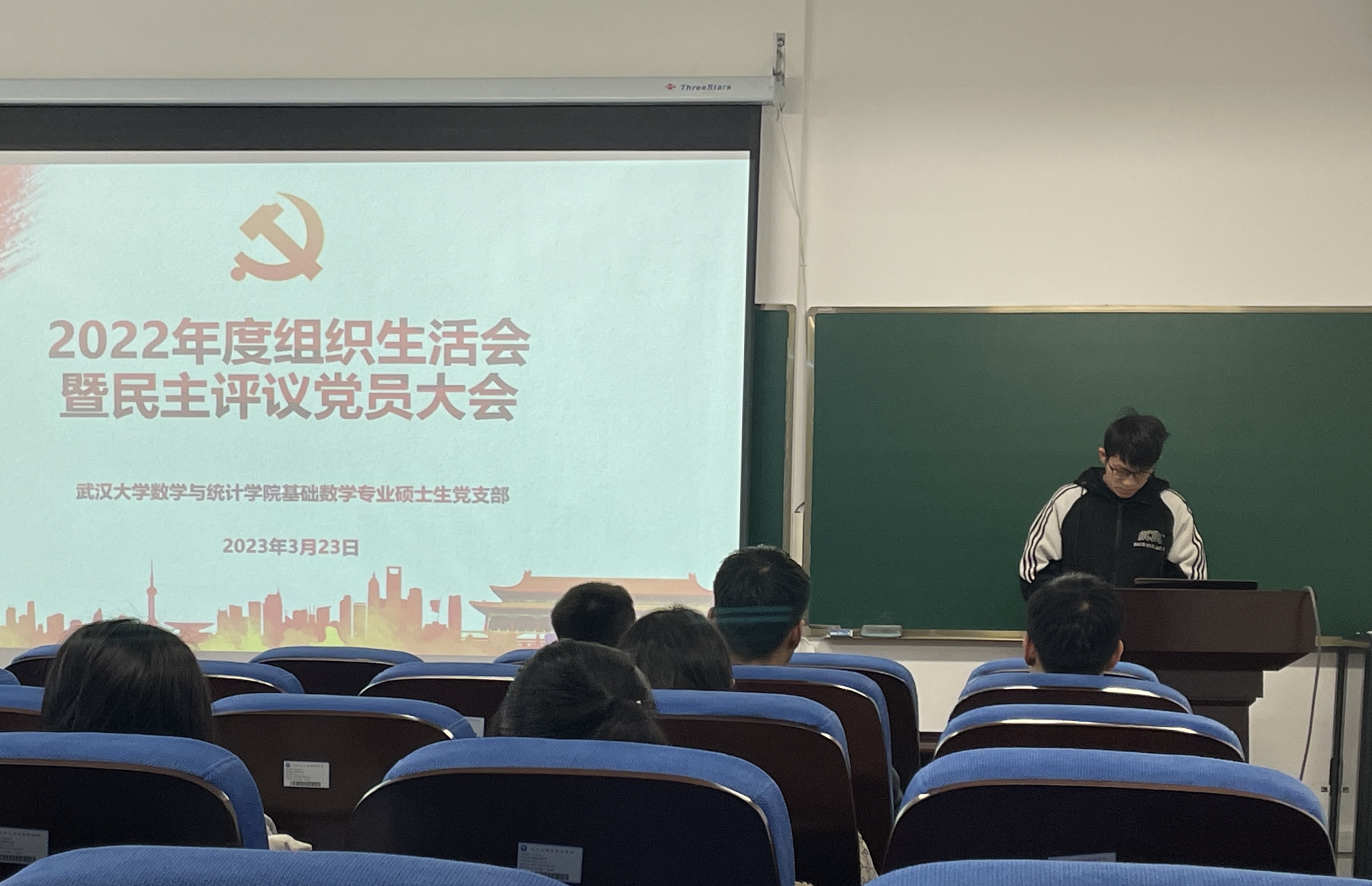 3月23日上午,成人直播 基础数学专业硕士生党支部召开2022年度组织生活会暨民主评议党员大会。院党委委员王茂发老师出席会议,会议由党支部书记夏豪杰主持。