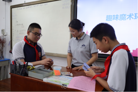 本次数学趣味拓展课程经过精心策划,共设置了“数学之美”“数学方法”“趣味互动”三个环节,4名研究生和8名本科生担任课程讲师。在“数学之美”环节,讲师们从形象美、严密美、逻辑美三方面出发,介绍了数学的直观美和朴素抽象的思维美,由简入深帮助学生们拓展知识、启迪思维。