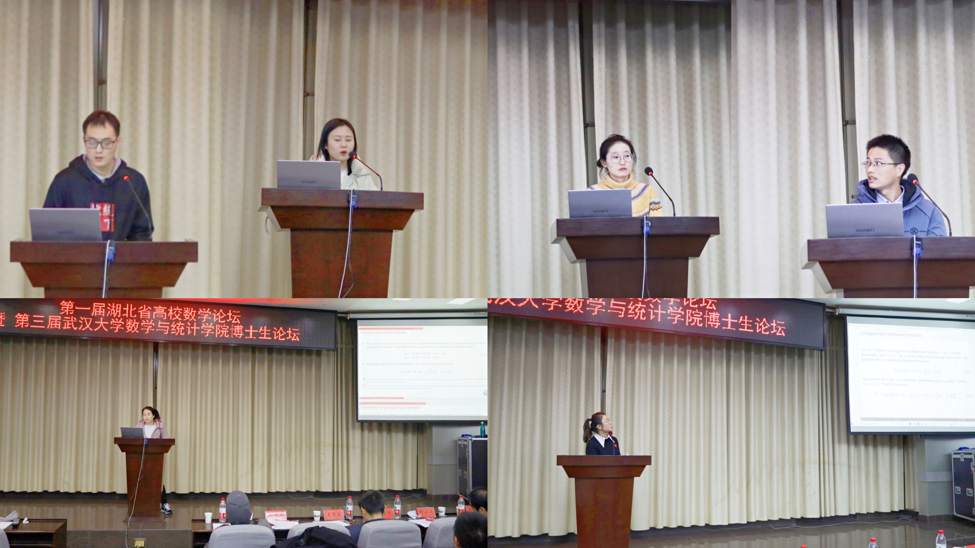张晓龙,赵青松,陈俊灵,丁山威,梁江燕,周凯,郑义,张峻皓,蒋海波,刘敏,汪顺,马迪同学;中国科学院精算所邱贵芹同学;华中科技大学范佳明,刘茜同学;华中师范大学王秋平同学。在本次论坛中,16位博士的报告充满热情,条理清晰。 他们与大家分享自己的科研近况,与评委老师交流探讨课题中未解决的问题。