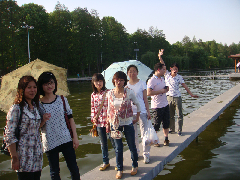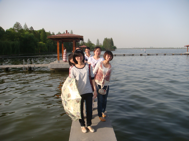 这天,天朗气清,惠风和畅,是个出游的好日子。上午九点多钟,2011级应用数学的男、女生分别从弘博和三环出发,在广八路公交车站集合,然后一同乘坐公交车前往东湖。同学们一路愉快交谈着,不知不觉中到达了目的地,只见东湖边杨柳依依,湖光粼粼,游人星星点点地散布于小桥上、亭子中、树荫下,有老人在悠闲地散着步,有年轻人欢乐地骑着多人脚踏车,有孩子们雀跃地玩着游戏,一派和平和安宁的景象。