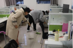 11日下午15:30,生活与心理部全体成员到达西北楼一楼。在西南楼领取清洁工具,以两人为一组,对每一个研修室逐一进行打扫和清理,最后合力完成面积最大的研修室101室的清洁与整理。大家先对地面做简单清扫,将多余不用的物品全部倾倒,将无人认领的物品暂时归到一处,最大限度地为更多同学争取到更多的研修室工位。活动过程中,部分研修室同学也加入到文化文明建设工作的行列中来,帮助工作人员共同清理。