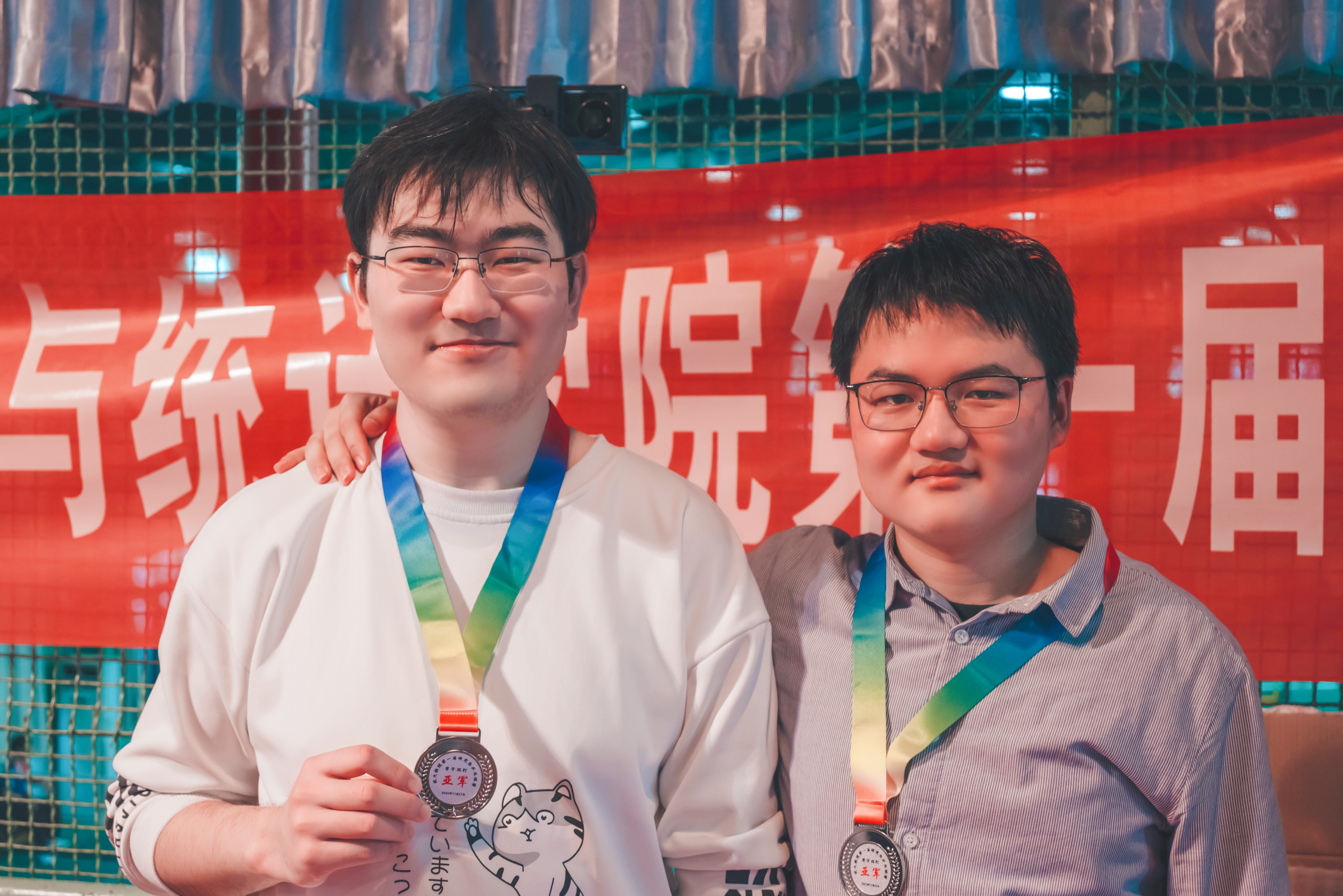 正所谓没有战胜不了的对手,只有更为默契的搭档。在男双比赛中,周睿康/桂宁馨与张弛/张成瑞组合之间的对战成为了焦点之战。首局比赛中,张弛/张成瑞敢打敢拼,积极抢攻,很快通过更为默契的配合取得了比分优势。随着周睿康侧身抢冲下网,张弛/张成瑞顺利拿下第一局比赛。第二局比赛中,周睿康/桂宁馨调整状态,通过更为稳健的球风扳回一局。随后的两局双方各下一城,大比分来到了2:2。比赛来到充满悬念的决胜局,白球每一次的跳动都牵动着在场所有人的心跳。张弛/张成瑞战术明确,稳中求变,张成瑞负责搓球控制,张弛寻求机会上手一击制胜,并不断通过落点变化迫使对手产生失误。很快,比分来到了7:9,张弛/张成瑞仅差2分就能拿下比赛!此时赛场风云突变,周睿康/桂宁馨临危不乱,稳扎稳打,周睿康通过更为积极的跑动穿梭于近台与远台之间,桂宁馨近台、中台球处理的更为细腻,康乃馨组合在关键时刻缠斗能力与韧性又上升了一个等级,连追3分,率先取得赛点!就当大家认为康乃馨可以一鼓作气拿下比赛之时,张弛打出了一个滚网球,将比分追至10:10平,空气仿佛在白球擦过网的一瞬间凝固了。运气球同样打乱了康乃馨组合的心态与进攻节奏,在逼出康乃馨组合的一个暂停之后,康乃馨组合迫于比分压力产生失误,张弛/张成瑞反拿一个赛点!在关键时刻,张成瑞面对半机会球产生了些许犹豫,在上手和搓球控制之间没有作出决断,产生失误!再次追平比分的康乃馨组合这次再也没给对手机会,稳扎稳打连下2分,最终决胜局以13:11战胜了张弛/张成瑞组合!王健/刘润泽、吕欣宇/谢毅飞、申淼水/罗昱辰组合间的对战同样激烈,最终周睿康/桂宁馨组合取得男双冠军,张弛/张成瑞组合取得男双亚军,王健/刘润泽组合取得男双季军。