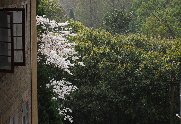 图二:谁人与尔相永驻,满树粉绿照倚户。(彭文轩)