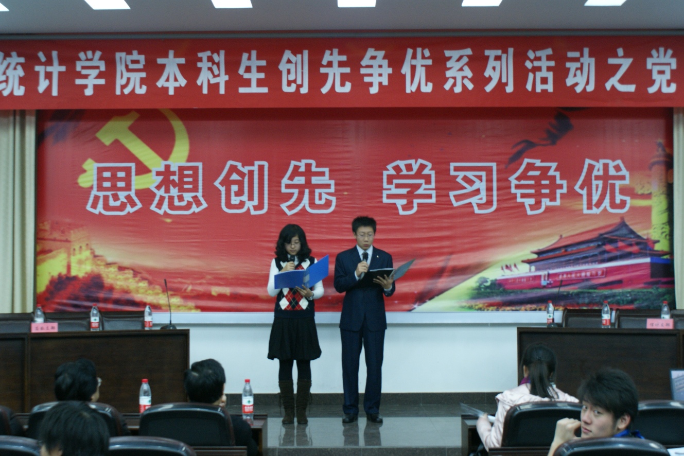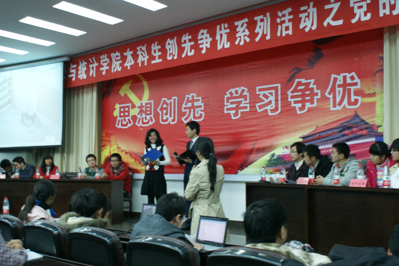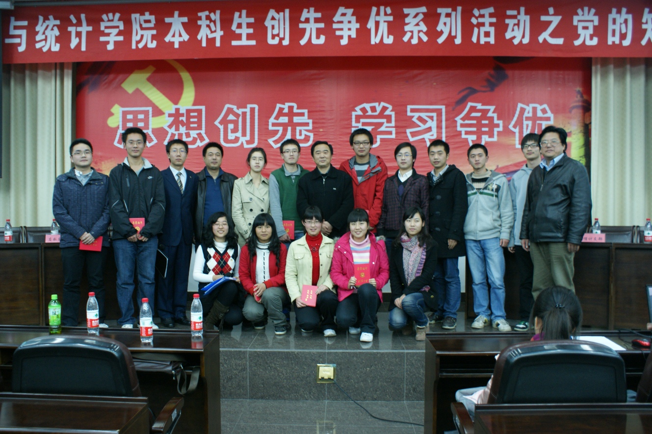 学生党员生活的多样性。在经过长达一个半小时的激励比拼后,信息与计算科学代表队最终以总得分80的成绩赢得桂冠,统计学党支部代表队、基地班党支部代表队和应用数学党支部代表队获得优胜奖。 通过这次知识竞赛,大家都对我党基本知识和党的基本理论有了更深入的了解,同时也吸引了更多优秀的同学积极的向党组织靠拢并努力发展成为其中优秀的一份子,不断保持党的先进性。祝愿各党支部在今后的学习生活等方面的工作发展上有更好的表现,努力形成“思想创先、学习争优”的良好局面。