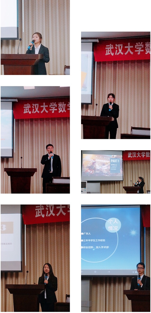 校研究生会副主席刑全伟同学发表讲话。他对数院研究生会长期以来对校研会工作的大力支持表示感谢,并对数院取得的优异成绩表示祝贺,也向数院研会工作提出宝贵建议,希望数院能将精品活动以及严谨认真的态度传承下去,且祝愿数院研会越办越好。