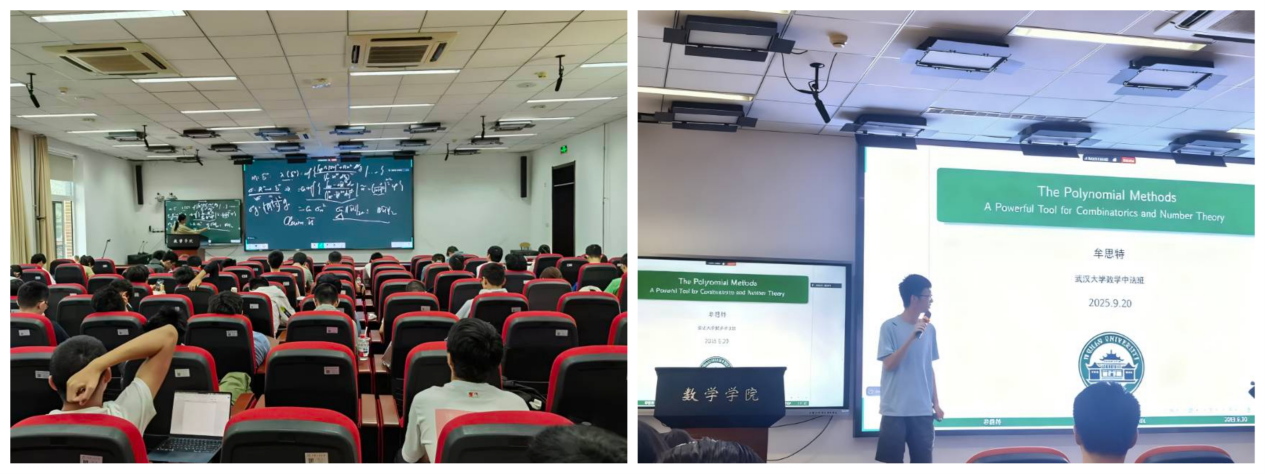 The exchange was divided into two sessions. The student session took place in the lecture hall of Renmin University’s School of Mathematics. Students attentively listened to undergraduate presentations from Renmin University on research experience, policies for guaranteed postgraduate recommendation, and the development of their mathematical modeling association, and then engaged in discussions on these topics. During the student presentation segment, representatives from the three schools spoke in turn, creating a strong academic atmosphere. Among them, Wuhan University China–France Elite Mathematics Class student Mou Site delivered a presentation titled “The Polynomial Methods: A Powerful Tool for Combinatorics and Number Theory,” systematically explaining how basic linear algebra serves as a bridge in research on combinatorics and number theory and demonstrating solid professional foundations and logical reasoning skills. In the open-exchange period, students enthusiastically discussed topics such as academic frontiers, study methods, and disciplinary interdisciplinarity, broadening their perspectives and deepening their understanding through intellectual exchange.